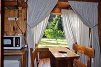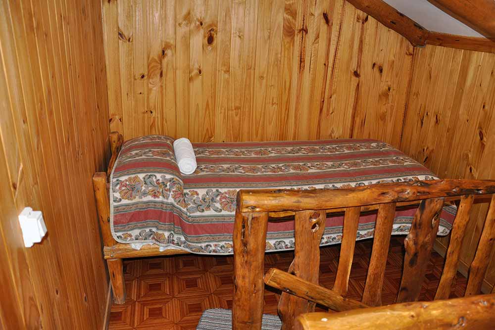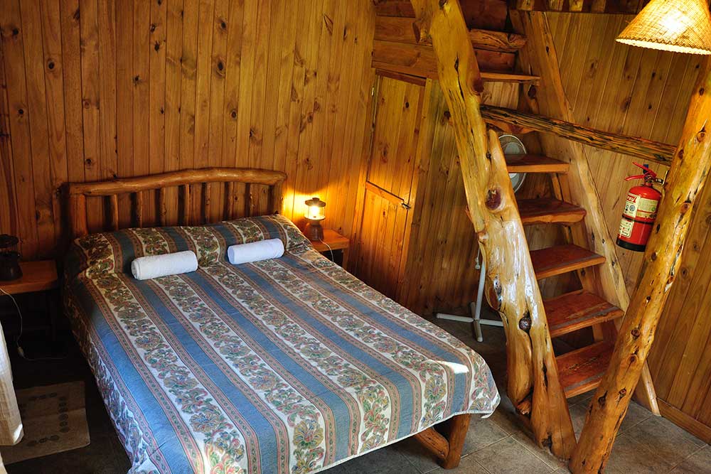 Estas cabañas cuentan con todos los servicios y comodidades básicas para una estadía confortable. Abajo se encuentra la cocina, el baño y la cama matrimonial; en la planta de arriba hay una habitación con dos camas individuales y un hermoso balcón. Todos sus muebles y su decoración están construidos en madera artesanalmente.
